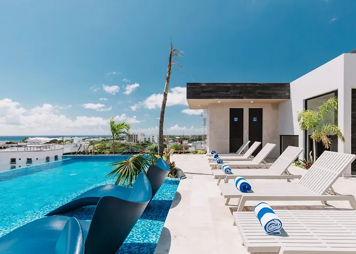 La Cozy Studio Pool And Roof Lounge Beach 5 Blocks ofrece un patio con vistas a la ciudad y se encuentra a 5 minutos en coche del aeropuerto Nacional de Playa del Carmen.
